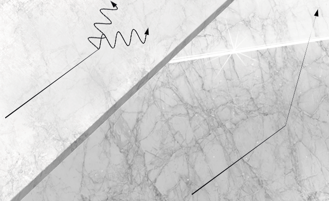 Aşağıdaki çizimde taş kesildiğinde sağdaki ışığın en iyi şekilde nasıl yansıtıldığı gösterilmektedir. Soldaki resim, taşın aşınma ve yıpranma nedeniyle "körleştiğini" ve dağınık ışığı yansıttığını gösteriyor. Mermer donuk görünüyor.